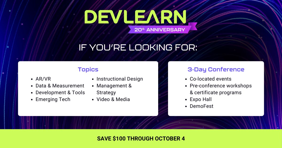 DateNov 4, 2026 - Nov 6, 2026 https://www.learningguild.com/devlearn/